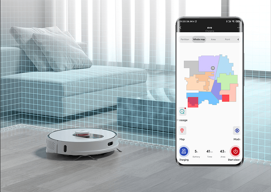 Dzięki mocy ssącej 2700 Pa Roidmi EVE Plus świetnie daje sobie radę z odkurzaniem nawet najdrobniejszych nieczystości. Sprawnie omija przeszkody, ma bowiem czujniki antyuderzeniowe podczerwieni i zwalnia w momencie, gdy trafi na przeszkodę.
