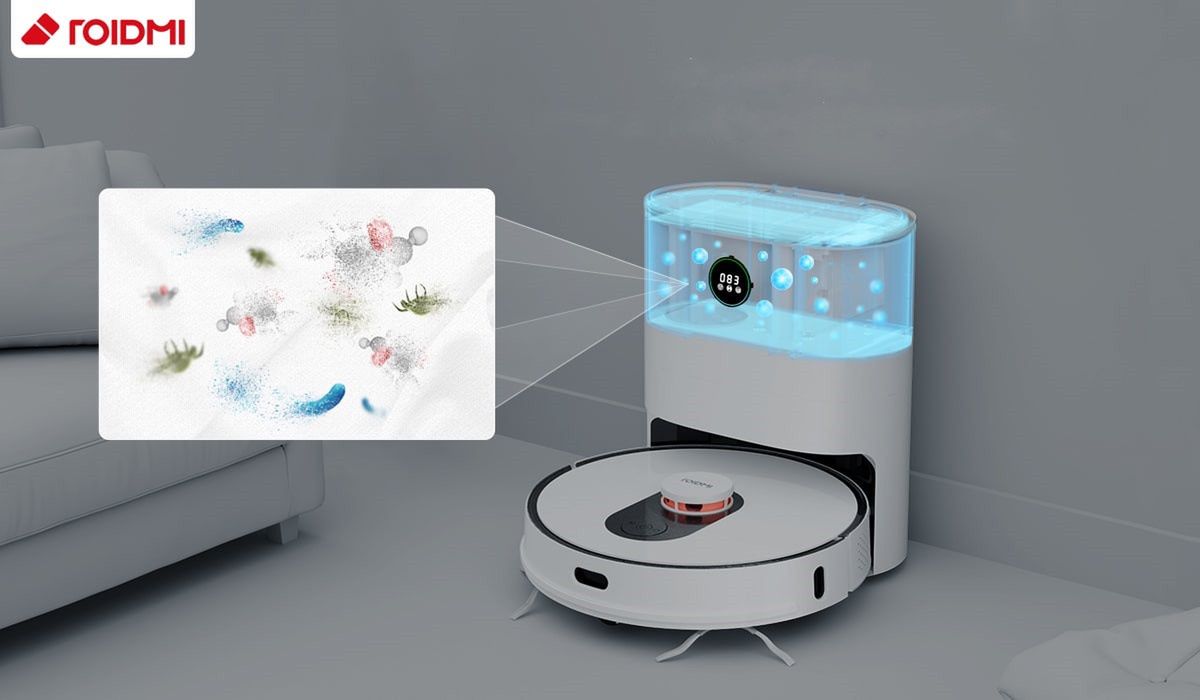 I właśnie robot Roidmi EVE Plus doskonale radzi sobie z tym zagrożeniem. Firma Xiaomi uznała, że dla domownika równie ważna jak moc czyszczenia, jest także sterylizacja stacji usuwania kurzu. I w ten sposób marka stała się protoplastą nowego rozwiązania.