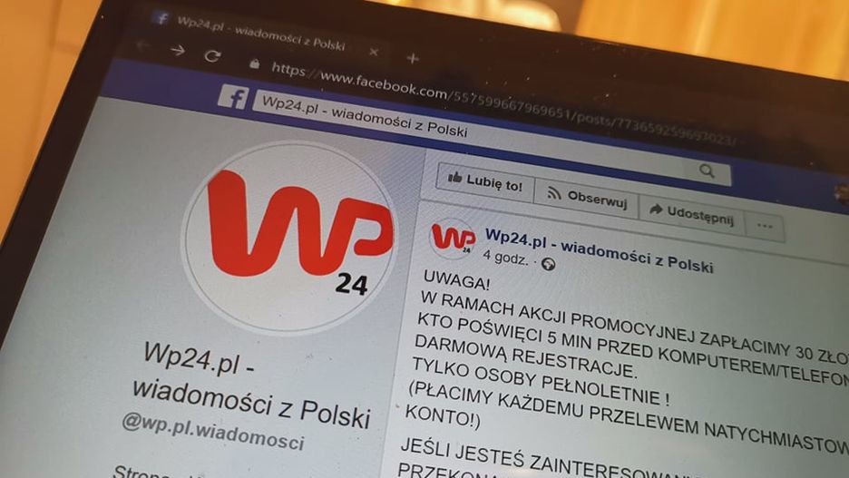 Widziałeś/aś reklamę na Facebooku, w której Wirtualna Polska obiecuje możliwość łatwego zarobku kwoty 30 zł? Nie klikaj jej – to oszustwo, z którym WP Media SA nie ma nic wspólnego.