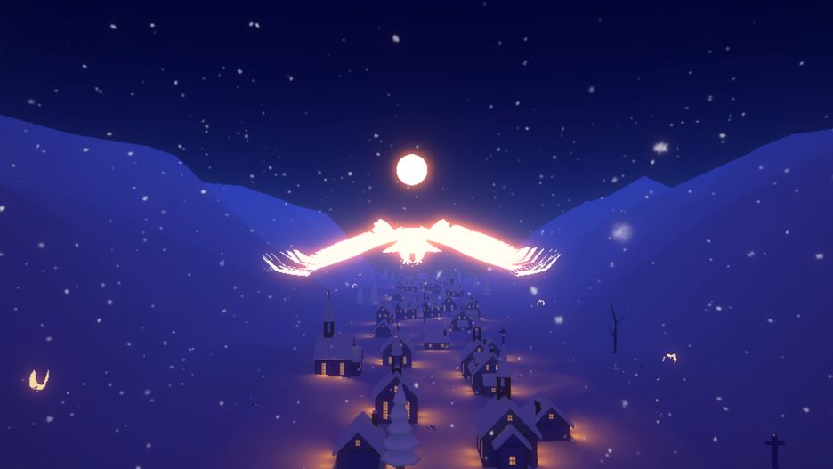Nie poznajemy powodu ani celu podróży świetlistego ptaka, który z uporem płynie nad zaśnieżonym miasteczkiem. Wiemy jedynie, że żeby przetrwać, musi on celować w inne jasne ptaki, które lecą w przeciwnym kierunku, oraz unikać czarnych.