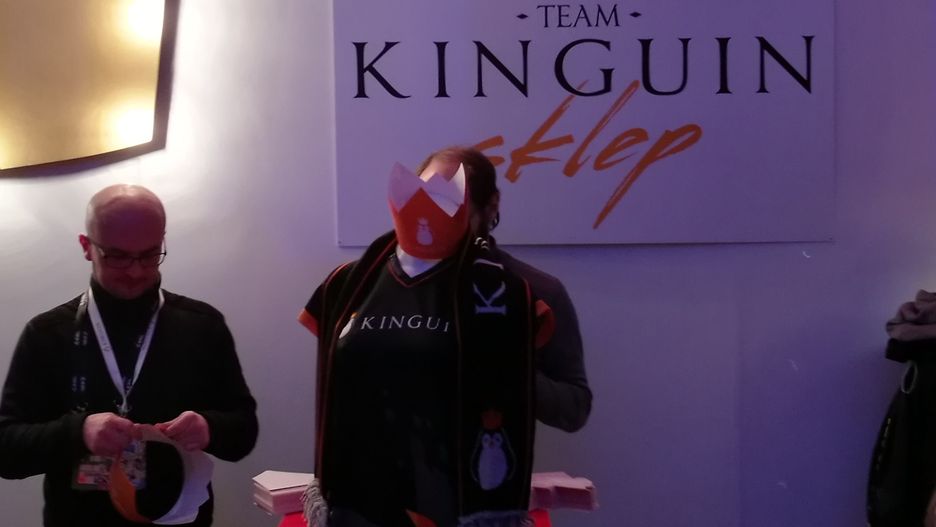 Ekspozycja Kinguin jest widoczna z daleka, neony i agresywne pomarańczowo-różowe barwy przyciągają niczym magnes. Globalny sprzedawca zaprasza do wycieczki w czasy minione, gdzie królowały flippery i maszyny z chwytakiem do wyciągania pluszaków (komuś się to udało?), piękne hostessy, osobistości YouTuba i streamerki (pozdrawiamy MAR1NĘ :)), oraz popcorn. Wszystko to okraszone fantami z logo Team Kinguin, jednej z najbardziej rozpoznawalnych drużyn e-sportowych.