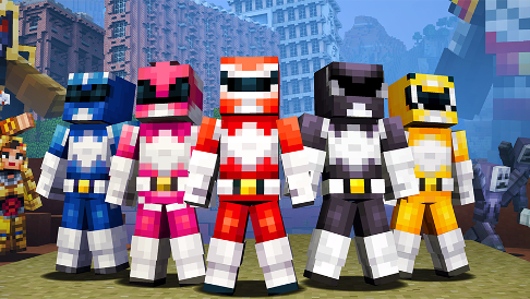 Dwa fenomeny, znane zupełnie różnym pokoleniom ludzi, zostały połączone. Microsoft i Mojang ogłosili, że w Minecrafcie dostępne są skórki dla postaci, bazujące na serialu. To kolejna okazja, by zachęcić młodsze osoby do zainteresowania się odkurzonym starociem i by przyciągnąć je do kin. W pakiecie znajdują się kostiumy bohaterów serialu, a także kilku przeciwników, jak Rita Repulsa, Bulk i Skull.