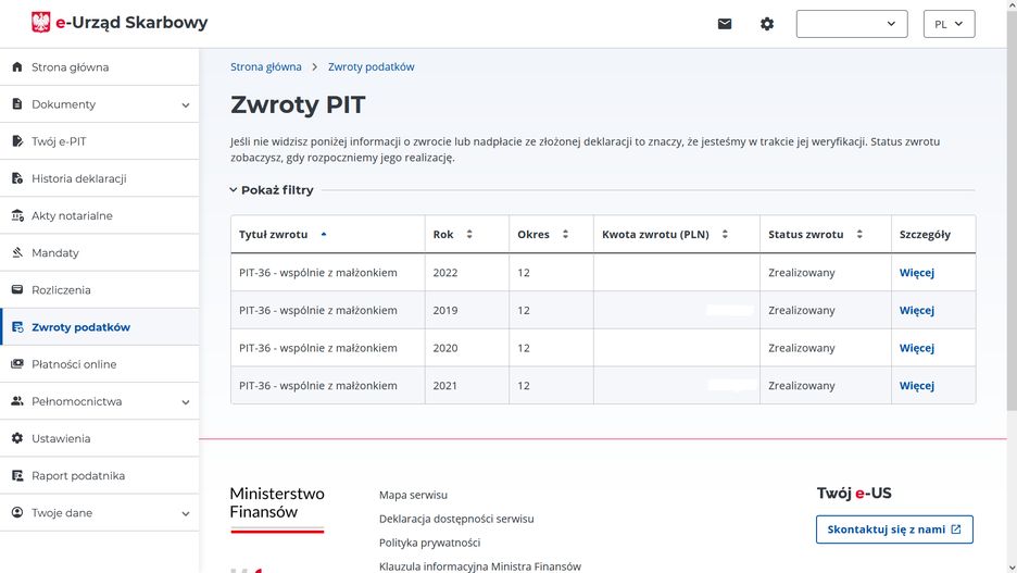 Klikając Więcej udostępnione zostaną bardziej szczegółowe dane dotyczące zwrotu nadpłaty podatku, w tym także data spodziewanej wypłaty.
